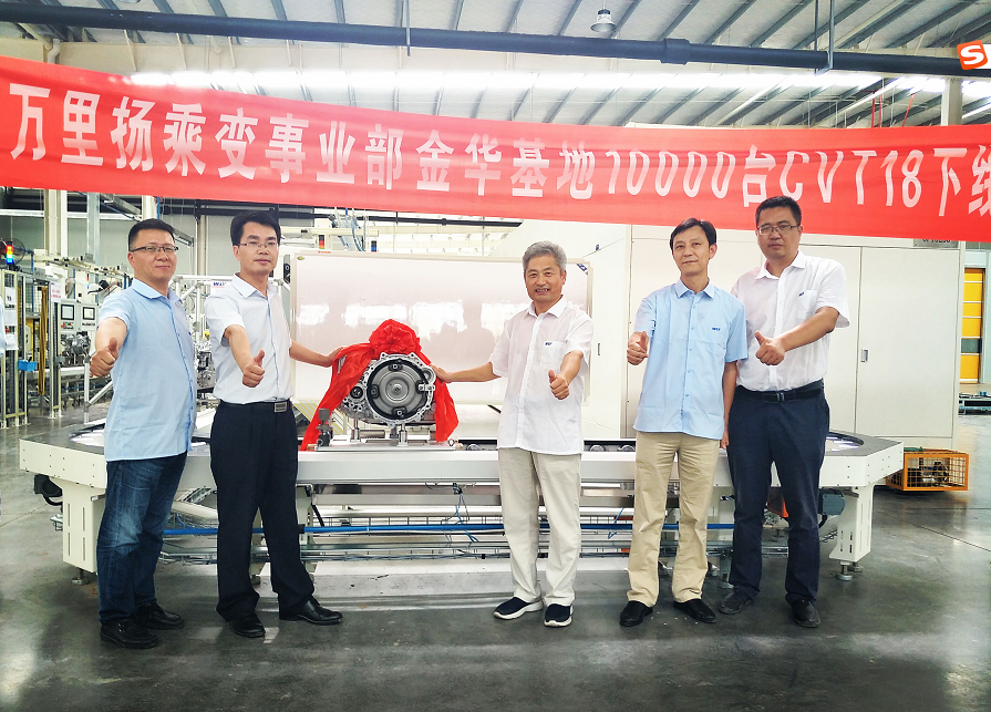 万台新纪元,扬帆新梦想。2019年8月4日下午15:00分,伟德国际1949乘变事业部金华基地迎来了新的里程碑——第10000台CVT18变速器身披“红袍”从生产线缓缓流出。股份公司总裁顾勇亭,股份公司副总裁兼乘变事业部总经理张志东,乘变事业部金华基地总经理赵继武、副总经理袁群星,乘变事业部营销公司副总经理马强及乘变事业部金华基地员工共同见证了这一重要时刻。